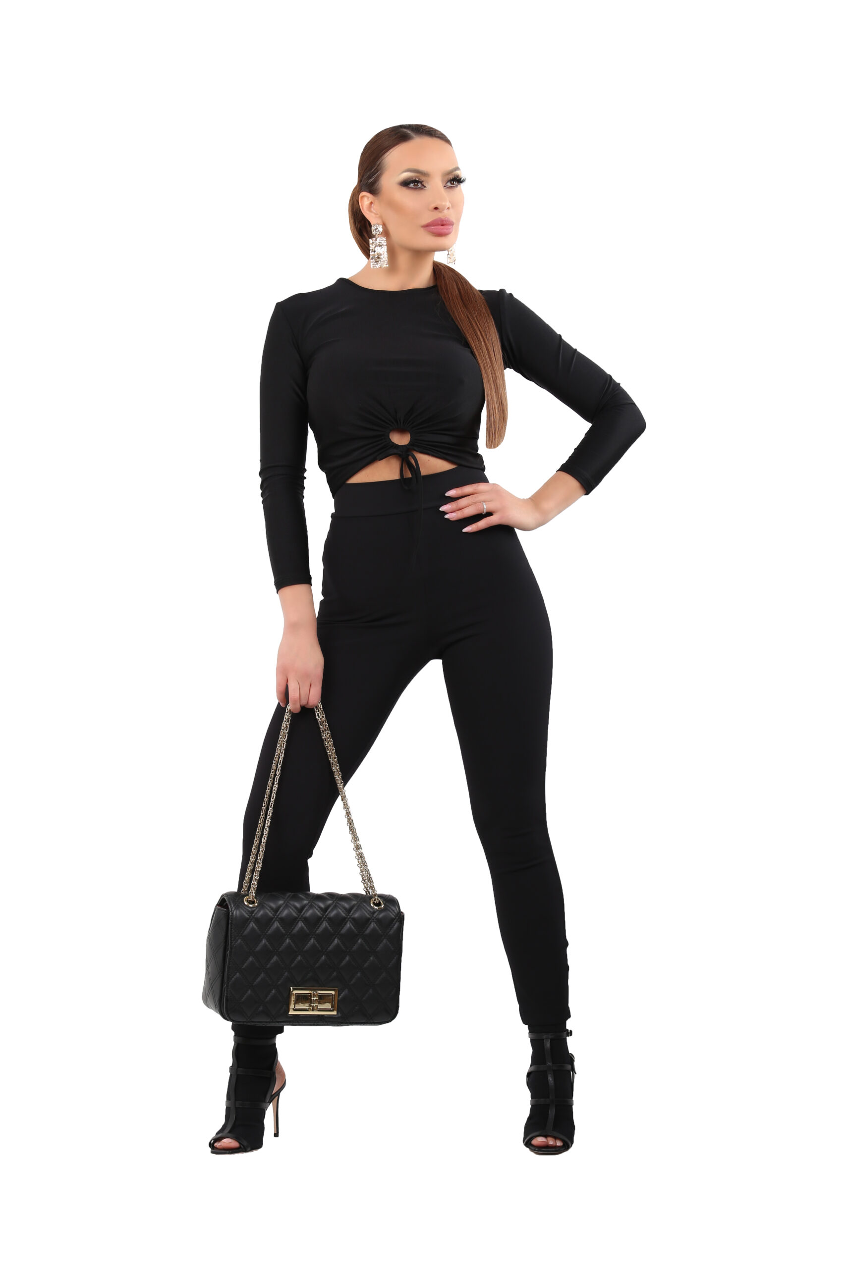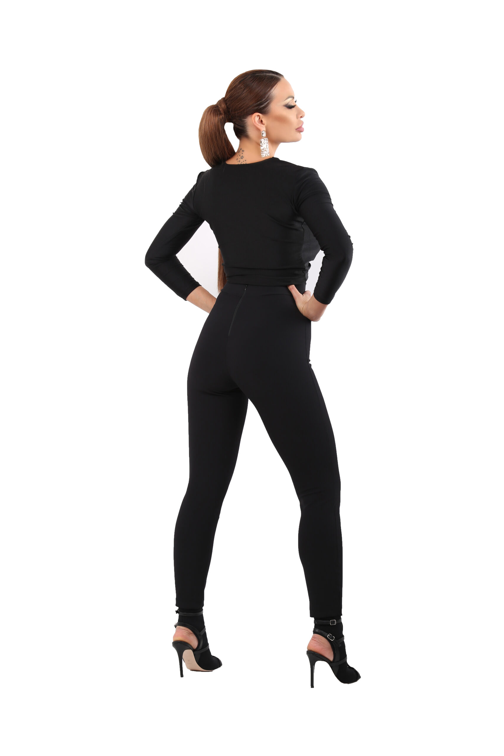 Salopeta Neagra Casual cu Buzunare si Fermoar Metalic, NANCY