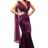Rochie Lunga tip Sirena cu Trena si Esarfa pe Umar,realizata din Tafta si Voal Matase, KATIA