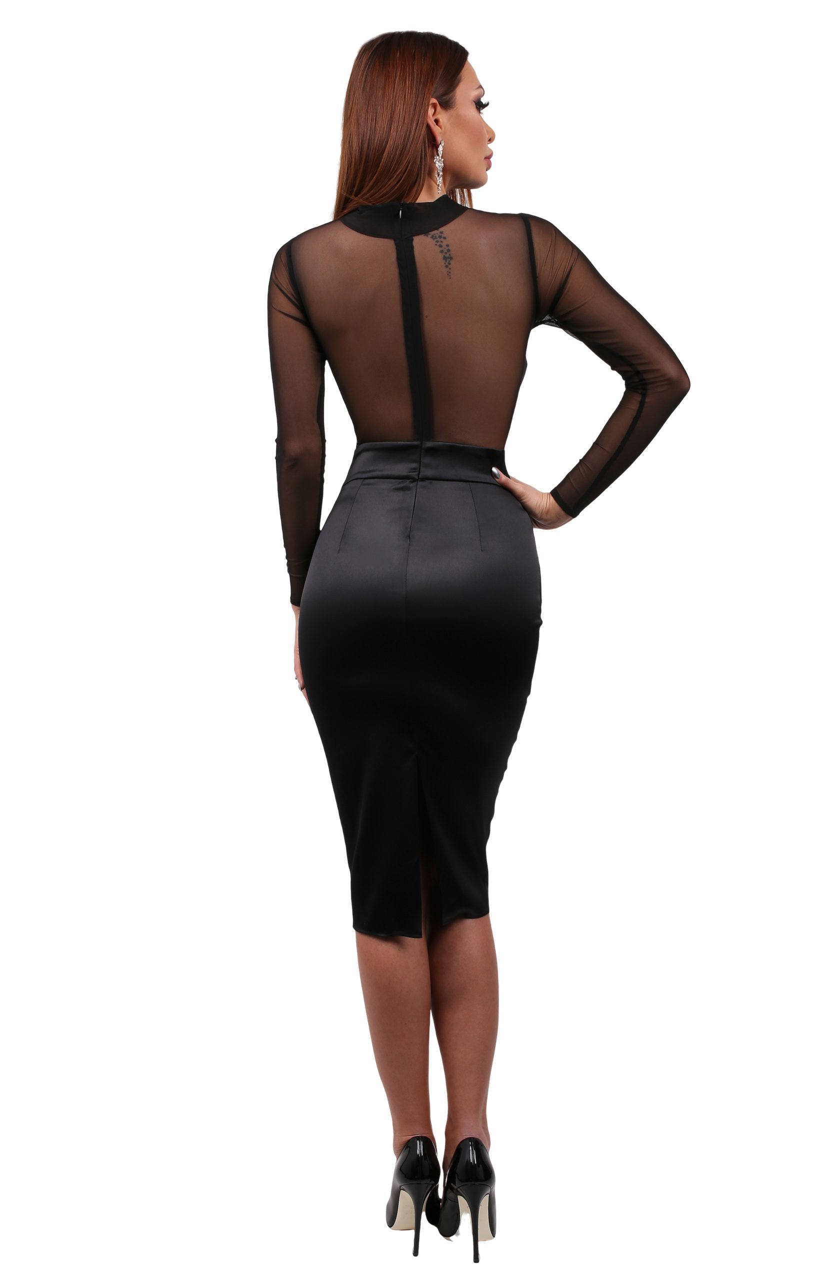 Rochie midi,eleganta,cu decolteu,realizata din tafta “OSCAR” si plasa , ambele elastice.